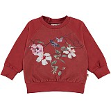 Футболка с длинным рукавом Molo – идеальный выбор для маленьких модниц! Изготовлена из 95% хлопка органического и 5% эластана, она украшена изысканным дизайном с цветами и бабочками. Нежная красная основа с белыми и розовыми цветами, а также черными бабочками создает нежный и уютный образ. На фото видна аккуратная окантовка по краю и мягкая текстура ткани. Качество от бренда из Дании и внимание к деталям делают эту футболку отличным выбором для вашего ребенка!