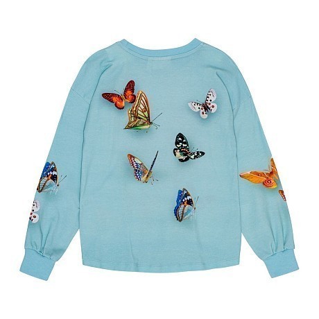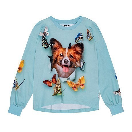 Голубая футболка с длинным рукавом Molo с принтом собаки и бабочек для девочек