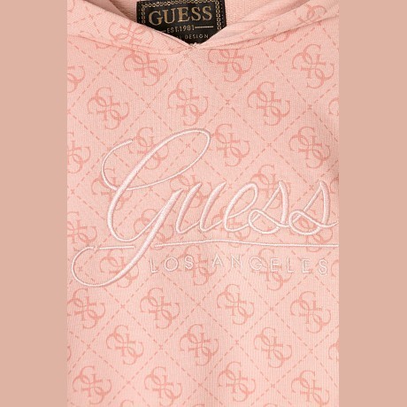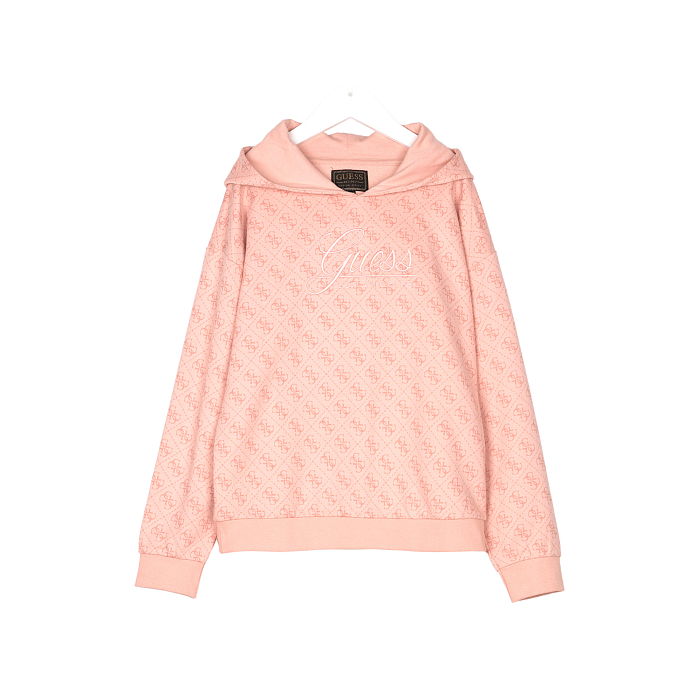 Толстовка Guess – это идеальный выбор для девочек! Изготовленная из 100% хлопка, она украшена мелким принтом логотипа Guess на светло-розовом фоне. Нежная ткань с мягким принтом логотипа создает уютное и стильное настроение. На фотографиях видна аккуратная текстура ткани и мягкая окантовка по краю. Качество от бренда из США и внимание к деталям делают эту толстовку отличным выбором для вашего ребенка!
