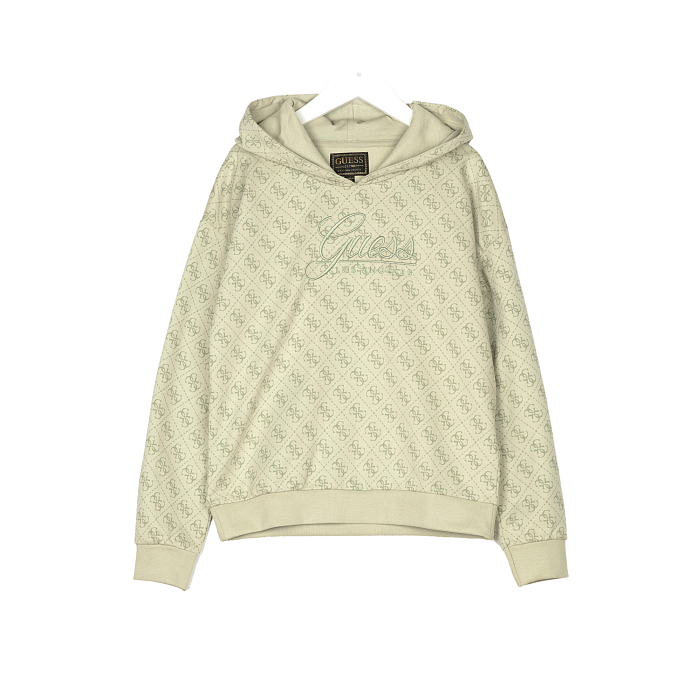 Толстовка Guess – это идеальный выбор для девочек 7 лет! Изготовленная из 100% хлопка, она украшена мелким принтом логотипа Guess на серо-зеленом фоне. Нежная ткань с логотипом Guess создает стильный и удобный образ. На фотографиях видна аккуратная вышивка логотипа на воротнике и рукавах, а также мягкая текстура ткани. Качество от американского бренда Guess и внимание к деталям делают эту толстовку отличным выбором для вашего ребенка!