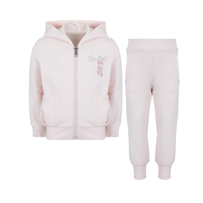 - 🎨 Дизайн: бледно-розовая основа, балеринки на толстовке, эластичные манжеты на брюках