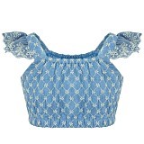 - 🎨 Дизайн: серо-голубой принт с мелкими квадратиками и точками, эластичные резинки на плечах и в талии
