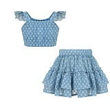 Серо-голубой комплект Lapin House (блузка+юбка) для девочек