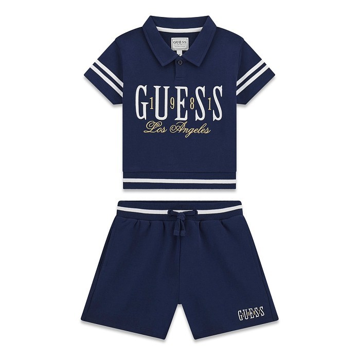 Темно-синий комплект Guess для девочек (блузка типа поло+шорты)