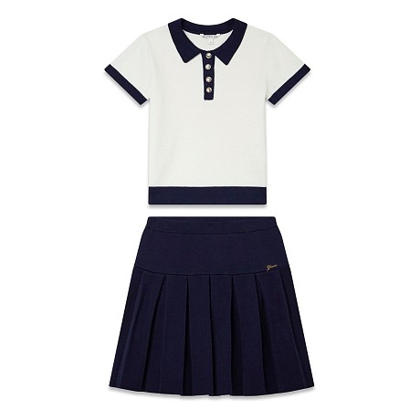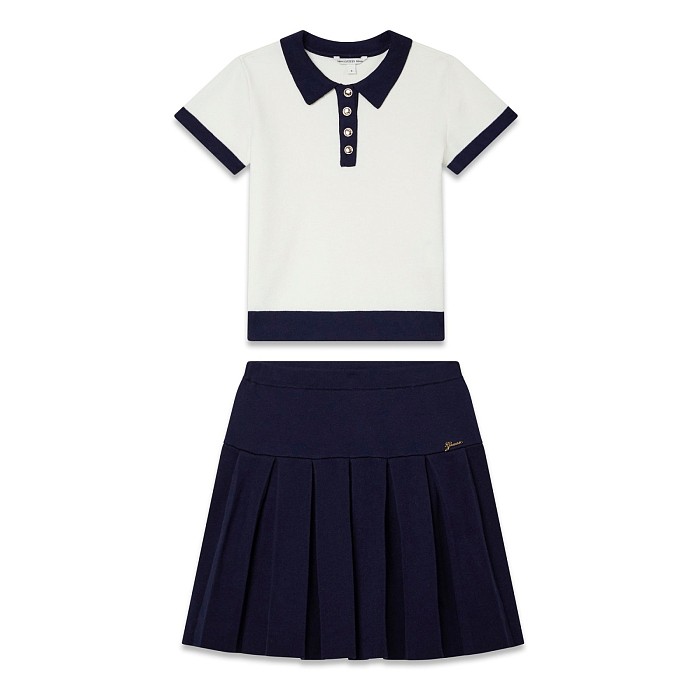 Белый комплект Guess для девочек: джемпер с коротким рукавом и воротником поло + юбка