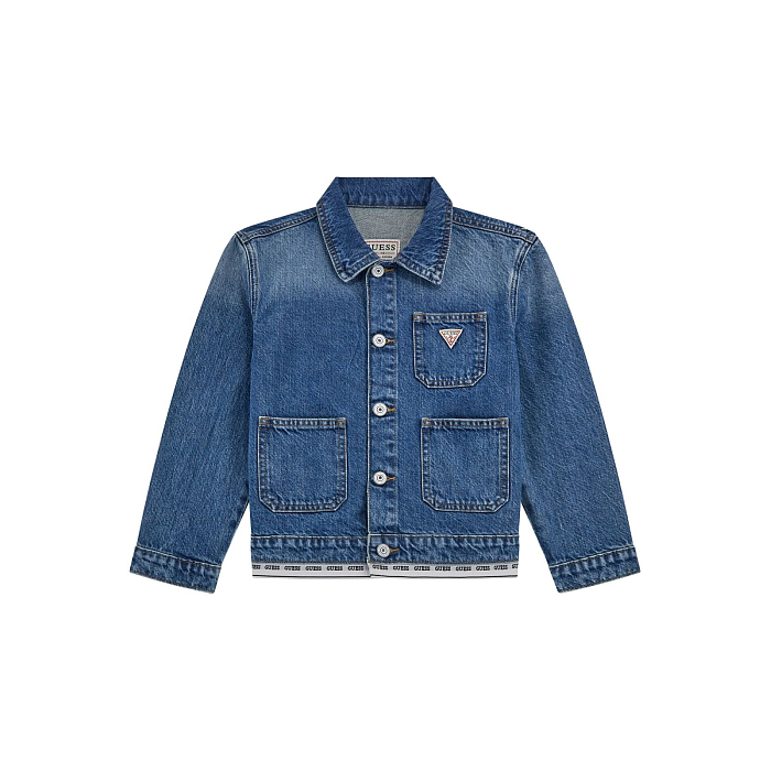 - 🎨 Дизайн: классический голубой цвет, карманы с логотипом Guess, удобная застежка на кнопки
