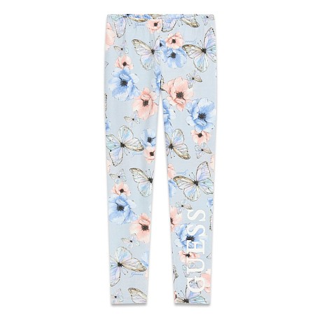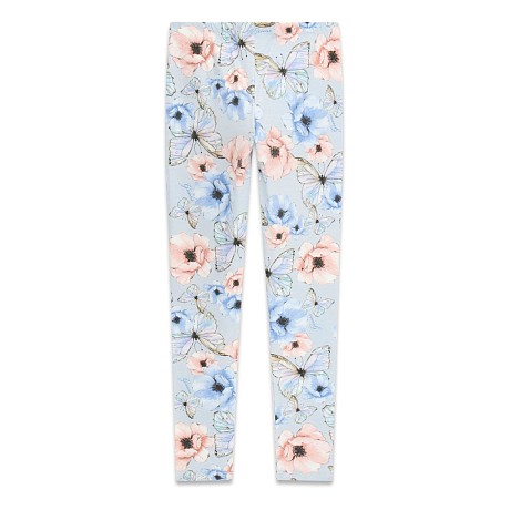 Брюки тр. узкие типа лосины для девочек Guess с принтом бабочек и цветов серо-голубой