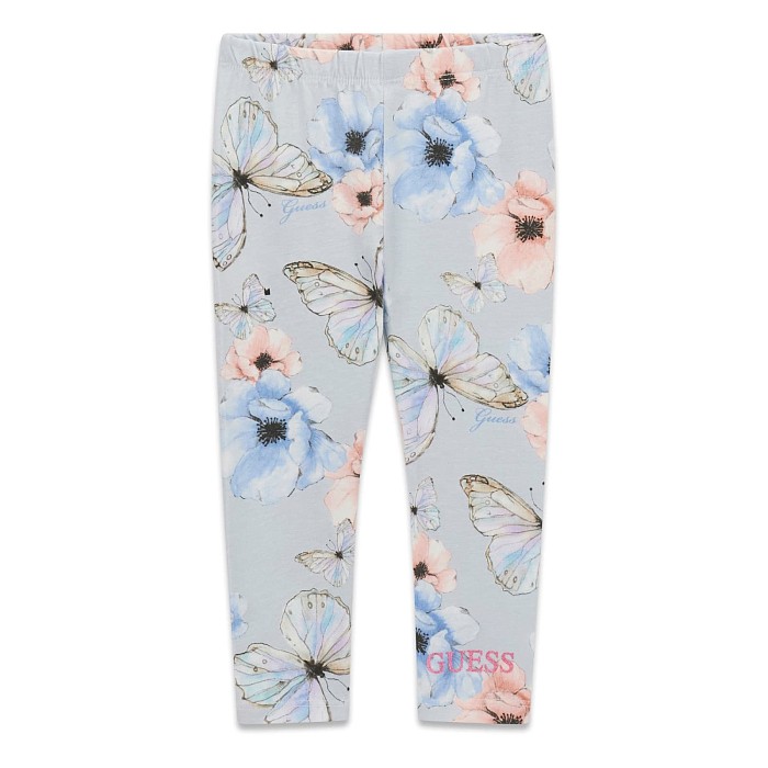Серо-голубые леггинсы для девочек Guess с цветочным принтом и бабочками