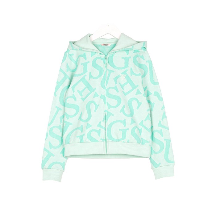 Джемпер Guess – это идеальный выбор для маленьких модниц! Изготовленный из 100% хлопка, он украшен стильным принтом логотипа Guess в мятном цвете. Нежная ткань и удобная посадка делают этот джемпер идеальным для повседневной носки. На фотографии видна аккуратная застежка на молнию и мягкая воротничная окантовка. Качество от бренда Guess и внимание к деталям делают эту вещь отличным выбором для вашего ребенка!
