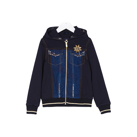 Кардиган Lapin House – это идеальный выбор для стильных девочек! Изготовлен из 95% хлопка и 5% эластана, с подкладкой из 92% хлопка и 8% эластана. Джинсовые карманы и золотой декор придают модели оригинальный и модный вид. Кардиган с капюшоном и удобной застежкой на молнию обеспечивает комфорт и удобство. На фотографиях видны аккуратные джинсовые карманы, золотой декор в виде звезды и стразы, а также мягкая и приятная на ощупь ткань. Кардиган подходит для девочек от 7 до 14 лет и идеально подойдет для повседневной носки или прогулок.