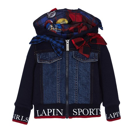 Кардиган для девочек Lapin House с капюшоном и джинсовыми карманами - доставка СДЭК по всей России - 212E2586/21-02
