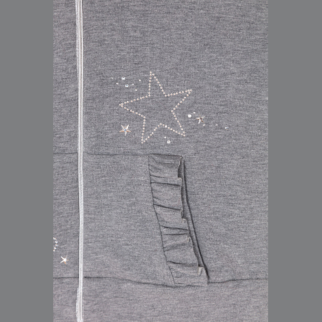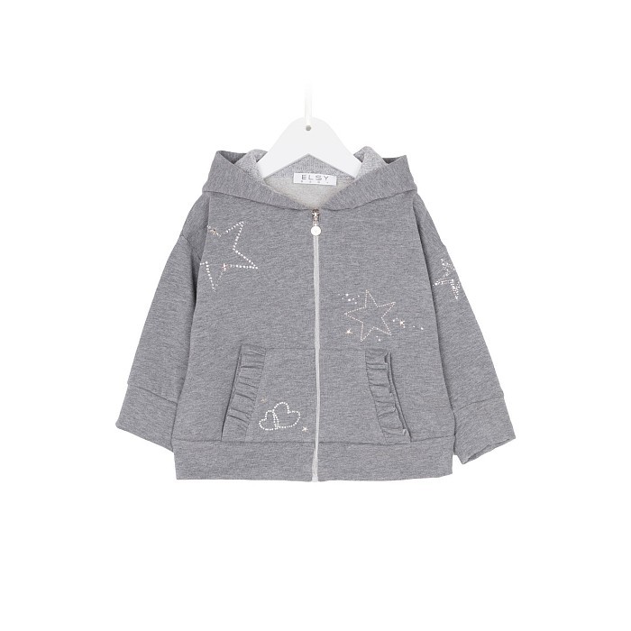 Куртка для девочек Elsy – это идеальный выбор для осенне-весенних дней! Изготовленная из комбинации 95% хлопка и 5% эластана, она обеспечивает комфорт и мягкость. Куртка украшена очаровательными звездами и сердечками, которые придают ей нежный и в то же время стильный вид. Нежная серая основа с яркими звездами и сердечками создает игривое и в то же время уютное настроение. На фотографиях видны аккуратные карманы с рюшами и мягкая текстура ткани. Качество от итальянского бренда и внимание к деталям делают эту куртку отличным выбором для вашего ребенка!