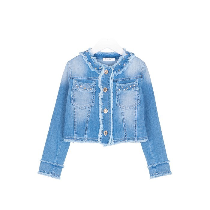 Куртка для девочек Elsy – это идеальный выбор для стильных модниц! Изготовленная из 72% хлопка, 25% полиэстера и 3% эластана, она идеально подойдет для осени и весны. Куртка украшена джинсовым принтом с эффектом потертости и блестящими стразами, что делает ее необычной и привлекательной. На фотографии видна аккуратная отделка края рукавов и карманов, а также металлические пуговицы. Качество от бренда из Румынии и внимание к деталям делают эту куртку отличным выбором для вашего ребенка!