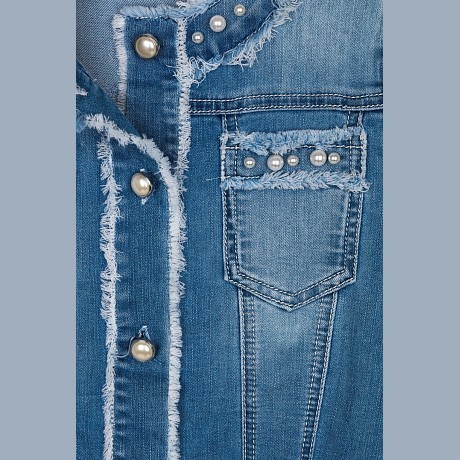 Жакет Elsy – это стильный и комфортный выбор для маленьких модниц! Изготовлен из 98% хлопка и 2% эластана, он украшен изящным жемчугом, что придает ему элегантность и шарм. Джинсовый стиль и мягкая джинсовая ткань делают этот жакет идеальным для повседневной носки. На фотографиях видны аккуратные детали жемчуга по краю, а также джинсовая структура ткани с небольшими потертостями, что придает жакету уникальный вид. Качество от итальянского бренда и внимание к деталям делают этот жакет отличным выбором для вашего ребенка!