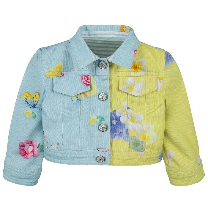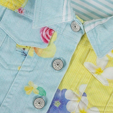Жакет Lapin House – это идеальный выбор для маленькой модницы! Изготовленный из 98% хлопка и 2% лайкры, он украшен ярким цветочным принтом с розами, бабочками и цветами на светло-голубом и желтом фоне. Нежная ткань с контрастными цветами создает яркий и веселый образ. На фотографии видны аккуратные пуговицы и удобная застежка. Качество от бренда из Греции и внимание к деталям делают этот жакет отличным выбором для вашего ребенка!