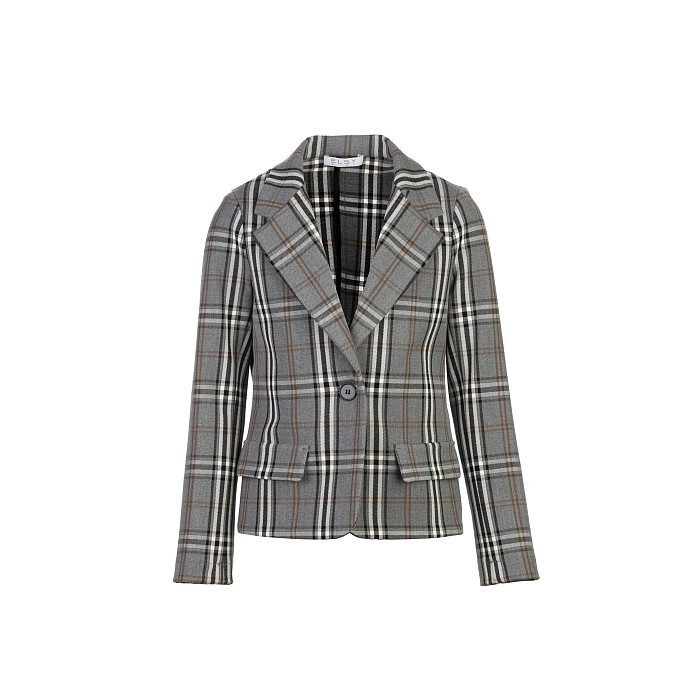 Жакет текстильный для девочек Elsy серого цвета с клеткой