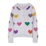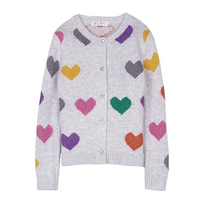 Жакет тр. для девочки Elsy – это идеальный выбор для вашего маленькой принцессы! Изготовленный из 38% вискозы, 38% полиэстера, 17% полиамида, 4% шерсти и 3% ангоры, он обеспечивает комфорт и тепло. Яркие сердечки на светло-сером фоне создают нежное и в то же время стильное настроение. На фотографиях видны аккуратные контрастные сердечки разных цветов, аккуратные пуговицы и мягкая текстура ткани. Качество от китайского бренда и внимание к деталям делают этот жакет отличным выбором для вашего ребенка!