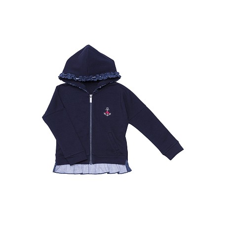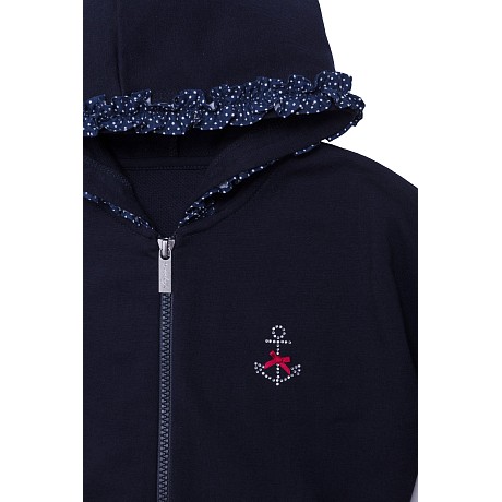 Жакет тр. Lapin House – это идеальный выбор для вашего ребенка! Изготовлен из 91% хлопка, 5% эластана и 4% полиэстера, он украшен вышивкой якоря и эластичной резинкой по краю. Нежная ткань и аккуратная вышивка создают стильный и комфортный образ. На фотографии видна эластичная резинка по краю капюшона и вышивка якоря на груди. Качество от бренда из Греции и внимание к деталям делают этот жакет отличным выбором для вашего ребенка!