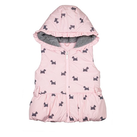 Жилет для девочек Lapin House – это идеальный выбор для вашего маленькой модницы! Изготовленный из комбинации 60% полиэстера, 16% акрила, 13% хлопка, 7% полиамида и 4% полиуретана, он обеспечивает комфорт и тепло. Милый принт с изображением собак придает жилету нежный и уютный вид. На фотографиях видна аккуратная серая окантовка по краю и мягкая текстура ткани. Качество от бренда из Греции и внимание к деталям делают этот жилет отличным выбором для вашего ребенка!