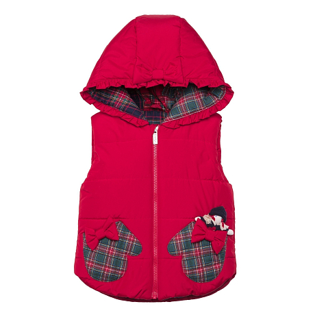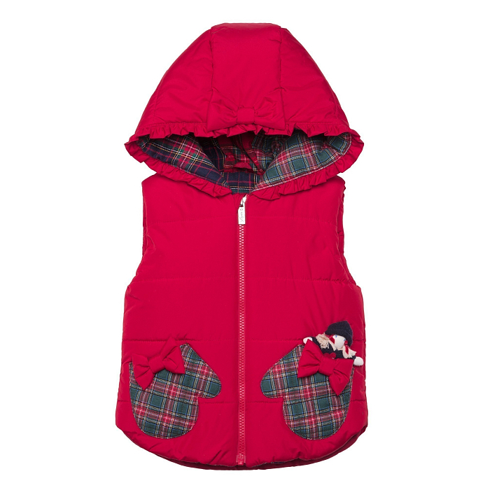 Красный жилет для девочек Lapin House с принтом клетки и бантом