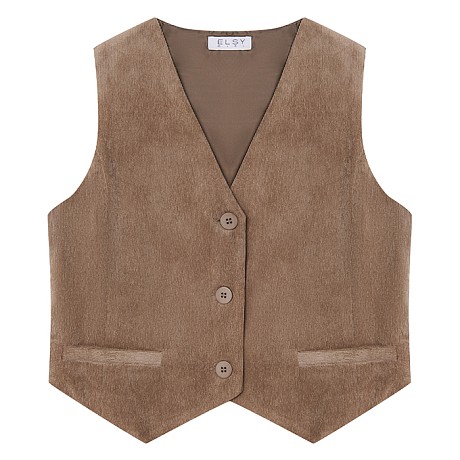 Жилет Elsy – идеальный вариант для стильных девочек! Изготовлен из высококачественного текстиля с комбинацией 90% полиэстера, 8% нейлона и 2% эластана. Два варианта цвета: бежевый и кремовый, которые идеально подойдут для различных нарядов. На фото видна аккуратная застежка на пуговицы и карманы по бокам, которые делают жилет удобным и практичным. Жилет Elsy – отличный выбор для девочек от 8 до 14 лет!