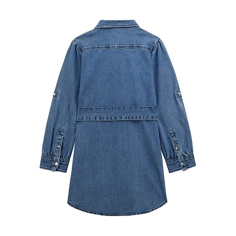 Платье Guess синего цвета – это идеальный выбор для девочек от 7 до 14 лет! Изготовленное из 98% хлопка и 2% эластана, оно обеспечивает комфорт и мягкость. Классический дизайн с двумя карманами спереди и поясом на талии делает это платье не только стильным, но и удобным. На фотографиях видны аккуратные карманы с пуговицами и эластичный пояс, который можно регулировать. Платье Guess – отличный выбор для повседневной носки и праздников!