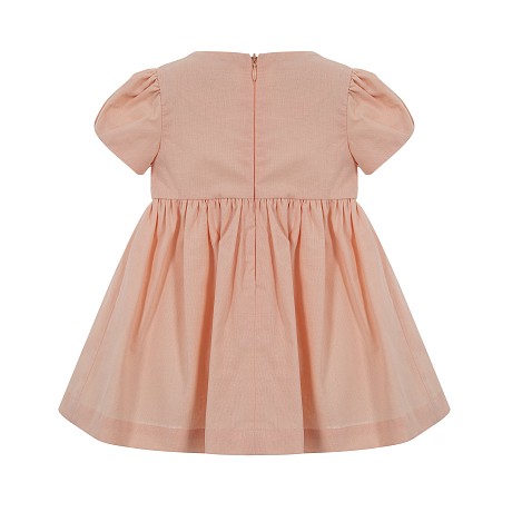 Платье Lapin House – это идеальный выбор для маленьких модниц! Изготовленное из 100% хлопка с подкладкой из того же материала, оно украшено крупным персиковым бантом и оборками. Круглый вырез горловины и короткие рукава создают элегантный и уютный образ. На фото видна аккуратная персиковая окантовка по краю и мягкая текстура ткани. Качество от бренда из Греции и внимание к деталям делают эту модель отличным выбором для вашего ребенка!
