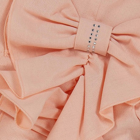 - 🎀 Дизайн: персиковый бантик, оборки, круглый вырез горловины, короткие рукава