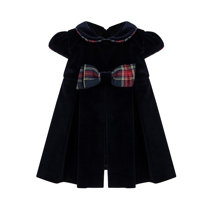 Темно-синее платье для девочек Lapin House с клетчатым бантом