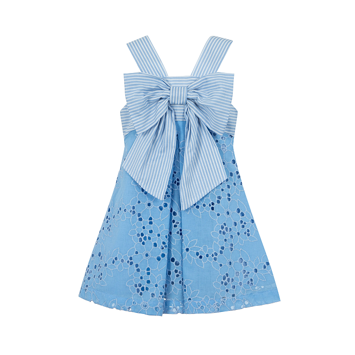 Платье (сарафан) Lapin House – это идеальный выбор для девочек! Изготовленное из 100% хлопка, оно украшено очаровательным голубым принтом в виде цветочков и симметричными бантиками на спинке. Банты, выполненные в голубой полоске, создают нежный и элегантный образ. На фотографиях видны аккуратные детали, такие как белые контрастные линии по краю, мягкая текстура ткани и удобная застежка на спинке. Качество от бренда из Греции и внимание к деталям делают это платье отличным выбором для вашего ребенка!