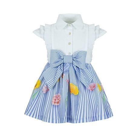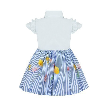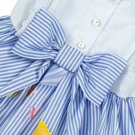 Платье для девочек Lapin House – это идеальный выбор для весны и лета! Изготовленное из 90% хлопка, 8% тактеля и 2% лайкры, оно украшено ярким цветочным принтом на голубом фоне. Белый воротничок и рукава с оборками придают платью нежность и изысканность. На фото видна аккуратная голубая окантовка по краю и мягкая текстура ткани. Качество от Греции и внимание к деталям делают эту модель отличным выбором для вашего ребенка!