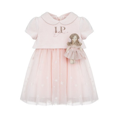 Бледно-розовое платье для девочек Lapin House с принтом и куклой