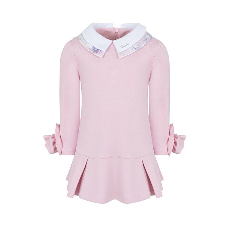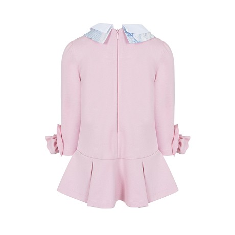 Платье для девочек бледно-розового цвета с воротником и рукавами с бантиками