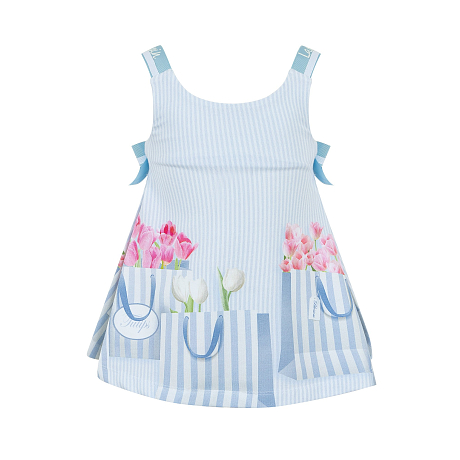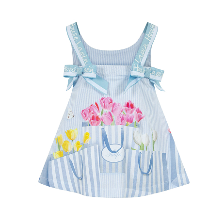 Платье для девочек Lapin House – это идеальный выбор для весны и лета! Изготовленное из 95% хлопка и 5% лайкры, оно украшено очаровательным принтом тюльпанов и полосок. Нежная голубая полоска с белыми тюльпанами и желтыми тюльпанами создает яркий и веселый образ. На фотографиях видны аккуратные голубые ленты на плечах и мягкая текстура ткани. Качество от бренда из Греции и внимание к деталям делают эту модель отличным выбором для вашего ребенка!