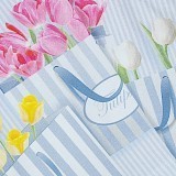 - 🎨 Дизайн: розовые тюльпаны, белые тюльпаны в голубых сумочках