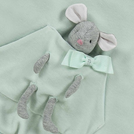 - 🎨 Дизайн: серо-зеленый фон, мышка с бантиком