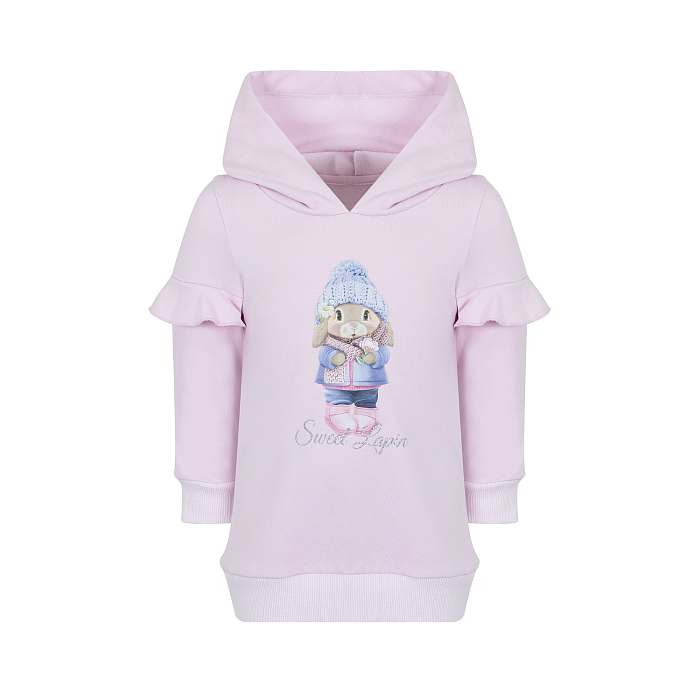 Розовое трикотажное платье для девочки с принтом Sweet Lapin