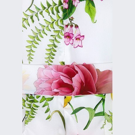 - 🎨 Дизайн: цветочный принт с розовыми и желтыми цветами, зелеными листьями и бутонами