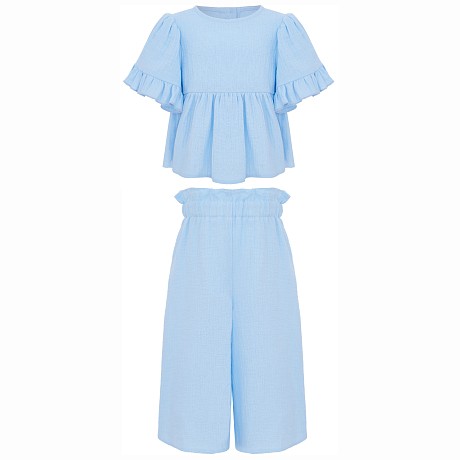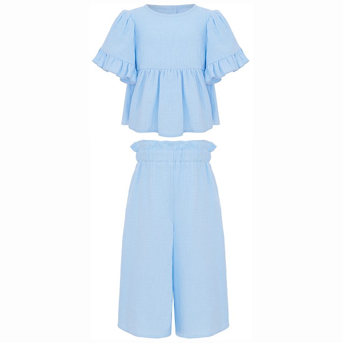 Комплект из блузы с короткими рукавами и брюк от Piccino Bellino – идеальный выбор для теплых дней! Изготовлен из 100% муслина (органический хлопок), блуза с рюшами на рукавах и брюки с эластичной резинкой на талии создают стильный и комфортный образ. На фотографиях видна нежная голубая блуза с рюшами на рукавах и брюки с эластичной резинкой на талии. Качество от бренда из России и внимание к деталям делают этот комплект отличным выбором для вашего ребенка!