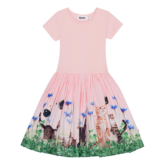 Платье Molo – это идеальный выбор для маленьких принцесс! Изготовленное из 96% хлопка и 4% эластана, оно украшено очаровательными кошками и цветами на светло-розовом фоне. Нежная ткань с яркими принтами создает игривое и в то же время уютное настроение. На фотографиях видны милые кошки, цветы и бабочки на юбке, а также мягкая текстура ткани. Качество от бренда из Дании и внимание к деталям делают эту юбку отличным выбором для вашего ребенка!