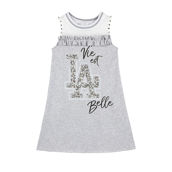 Платье Elsy – это идеальный выбор для маленьких модниц! Изготовленное из 95% хлопка и 5% эластана, оно дополнено блестящим принтом LA и жемчугом. Красивый серый цвет с белым принтом и жемчужными элементами создает стильный и элегантный образ. На фотографии видна аккуратная отделка по краю платья и мягкая текстура ткани. Качество от бренда из Китая и внимание к деталям делают эту модель отличным выбором для вашего ребенка!
