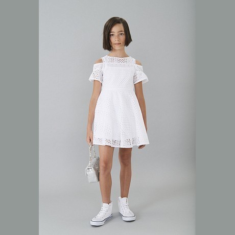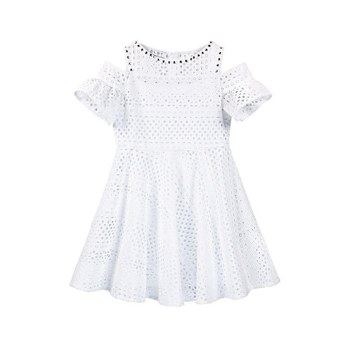 Платье Elsy – это идеальный выбор для девочек! Изготовленное из 100% хлопка, оно украшено стильным кружевом и открытыми плечами. Элегантная белая основа с нежным кружевом создает романтичное и в то же время современное настроение. На фотографии видна аккуратная отделка кружевом по краю плеч и мягкость ткани. Качество от бренда из Китая и внимание к деталям делают эту модель отличным выбором для вашего ребенка!
