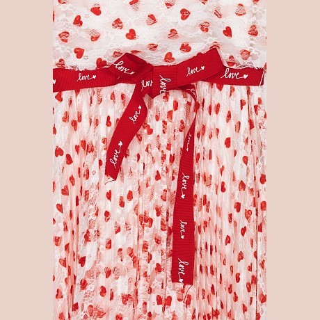 Платье Elsy – это идеальный выбор для маленьких принцесс! Изготовленное из комбинации 95% полиэстера и 5% эластана, оно украшено очаровательными сердечками и красным бантом. Подкладка из 100% хлопка делает платье мягким и комфортным для нежной кожи. Мягкая ткань с ярким принтом создает нежное и в то же время стильное настроение. На фотографии видна аккуратная красная лента с надписью "Love" и мягкая текстура ткани. Качество от итальянского бренда Elsy и внимание к деталям делают эту модель отличным выбором для вашего ребенка!