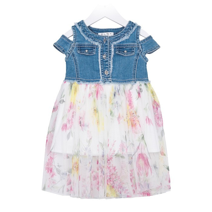 Платье для девочек Elsy с цветочным принтом и джинсовым верхом