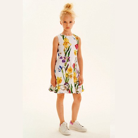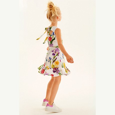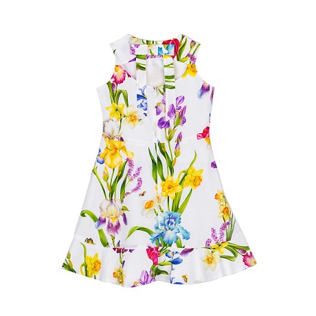 Платье Elsy – это идеальный выбор для девочек! Изготовленное из 100% полиэстера с подкладкой из 100% хлопка, оно украшено ярким цветочным принтом с разноцветными тюльпанами, нарциссами, ирисами и бабочками на белом фоне. Красочное платье с элегантным принтом создаст неповторимый образ для вашего ребенка. На фотографии видна аккуратная вышивка логотипа Elsy на горловине и мягкая текстура ткани. Качество от бренда из Румынии и внимание к деталям делают эту модель отличным выбором для вашего маленькой принцессы!