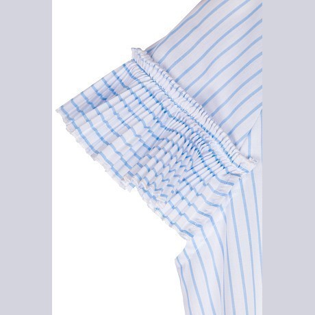 - 🎨 Дизайн: голубые полоски, бантик на талии