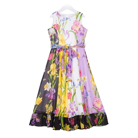 Платье Elsy – это идеальный выбор для девочек! Изготовленное из 100% полиэстера с подкладкой из 100% хлопка, оно украшено ярким цветочным принтом с разноцветными тюльпанами, лилиями и ирисами. Красочная комбинация цветов создает нежный и волшебный настрой. На фото видна аккуратная сборка по краю юбки и мягкая текстура ткани. Качество от румынского бренда Elsy и внимание к деталям делают эту модель отличным выбором для вашего ребенка!