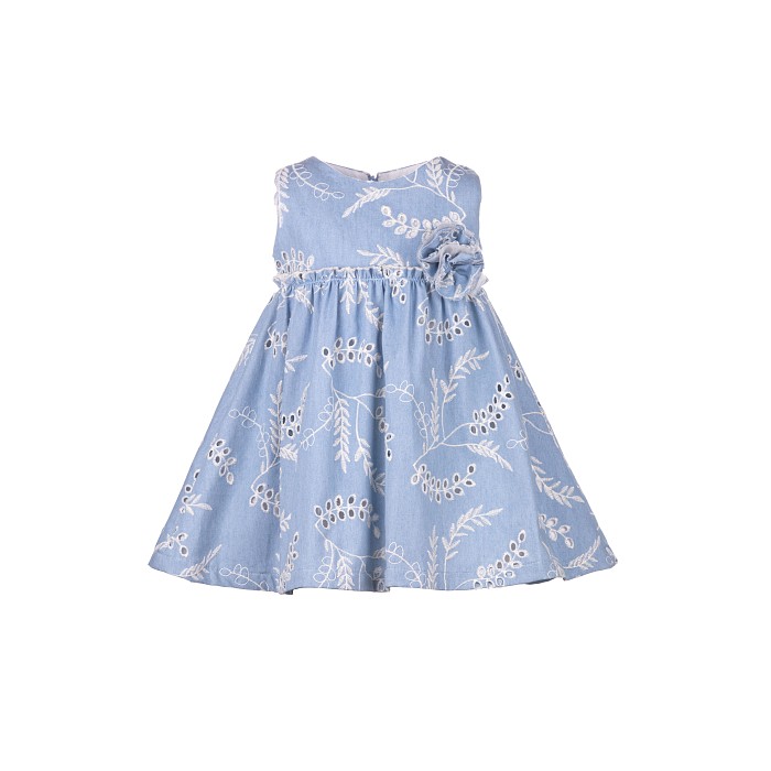 Платье для девочки Elsy – это идеальный выбор для летних прогулок! Изготовленное из 100% хлопка с подкладкой из того же материала, оно украшено изящной вышивкой в виде листьев и цветов. Платье с круглым вырезом горловины и эластичной резинкой по талии обеспечивает комфорт и удобство. На фото видна нежная вышивка, аккуратная резинка и мягкая текстура ткани. Качество от итальянского бренда Elsy и внимание к деталям делают эту модель отличным выбором для вашего ребенка!