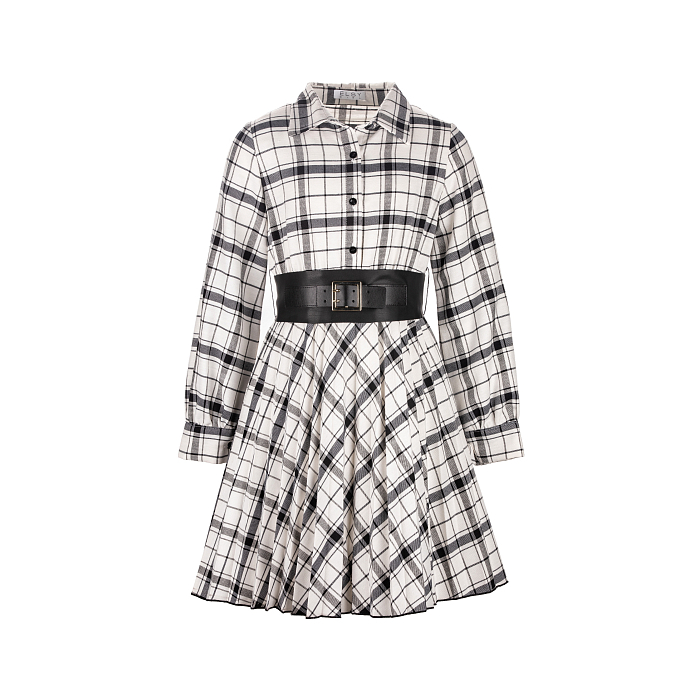 - 🎨 Дизайн: клетчатый принт, ремень на талии