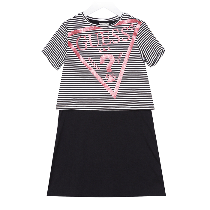 Платье Guess – это идеальный выбор для стильных девочек! Изготовленное из 95% хлопка и 5% эластана, оно украшено ярким принтом Guess и контрастной полоской. Контрастная полоска и принт Guess создают модный и современный образ, который подчеркнет индивидуальность вашего ребенка. На фотографии видна аккуратная полоска по краю и мягкая текстура ткани. Качество от бренда из Индии и внимание к деталям делают эту модель отличным выбором для вашего ребенка!